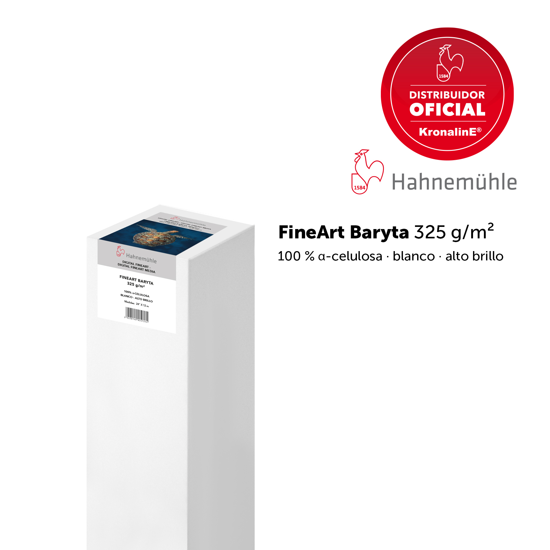 FineArt Baryta de Hahnemühle es un papel FineArt de color blanco claro a base de celulosa y con una capa inkjet especialmente diseñada para las aplicaciones FineArt. Su elegante estructura de fieltro es claramente visible y le confiere al papel una sensación agradable al tacto con una textura de superficie perceptible, lo cual permite realizar impresiones con marcada tridimensionalidad y profundidad impresionante. Su capa inkjet de alto brillo garantiza unos resultados de impresión extraordinarios con una excelente reproducción de colores y detalles, con un negro de gran profundidad e impresionantes contrastes. La capa inkjet contiene sulfato de bario, convirtiendo el papel FineArt Baryta en una alternativa real al papel baritado analógico. El papel FineArt Inkjet no contiene ácidos ni lignina y cumple con los requisitos más rigurosos de resistencia al envejecimiento. FineArt Baryta es un clásico con múltiples usos en las aplicaciones FineArt y es un papel líder en la impresión de fotografías en blanco y negro y en color.