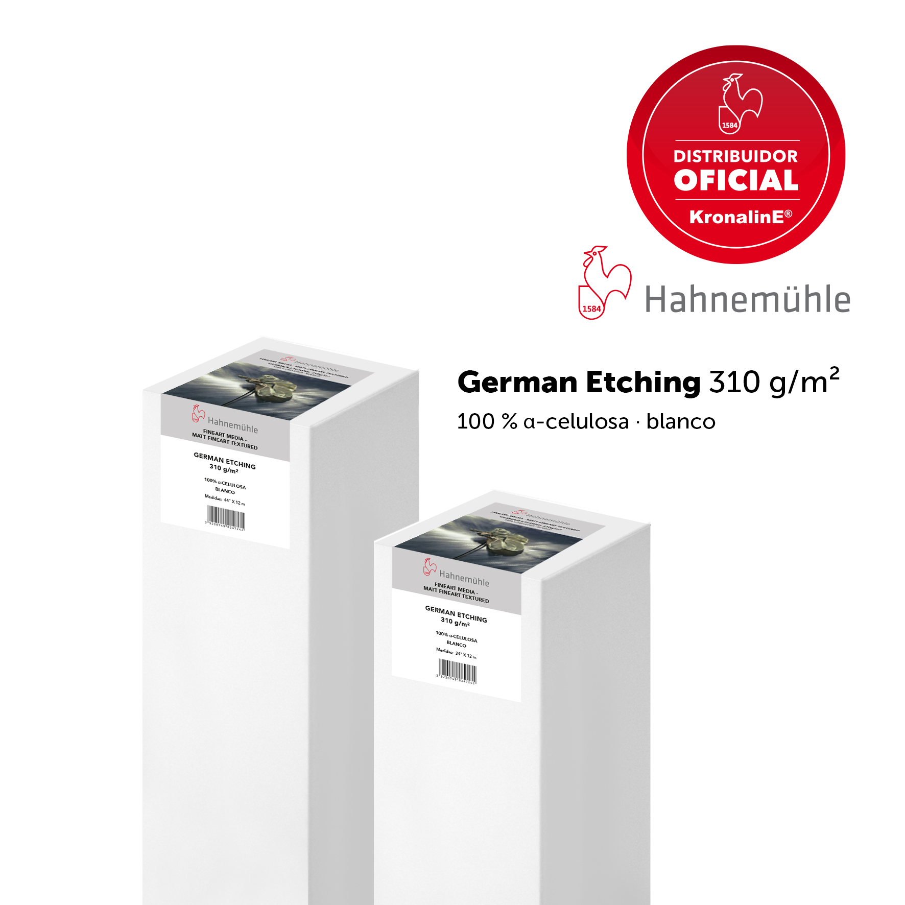 German Etching – un papel blanco, 100% α-celulosa – garantiza estándares de archivo. El papel para grabado, fabricado en molde superficie con una textura distintiva. Con su revestimiento mate de primera calidad para inyección de tinta, el German Etching cumple las normas más exigentes del sector en cuanto a